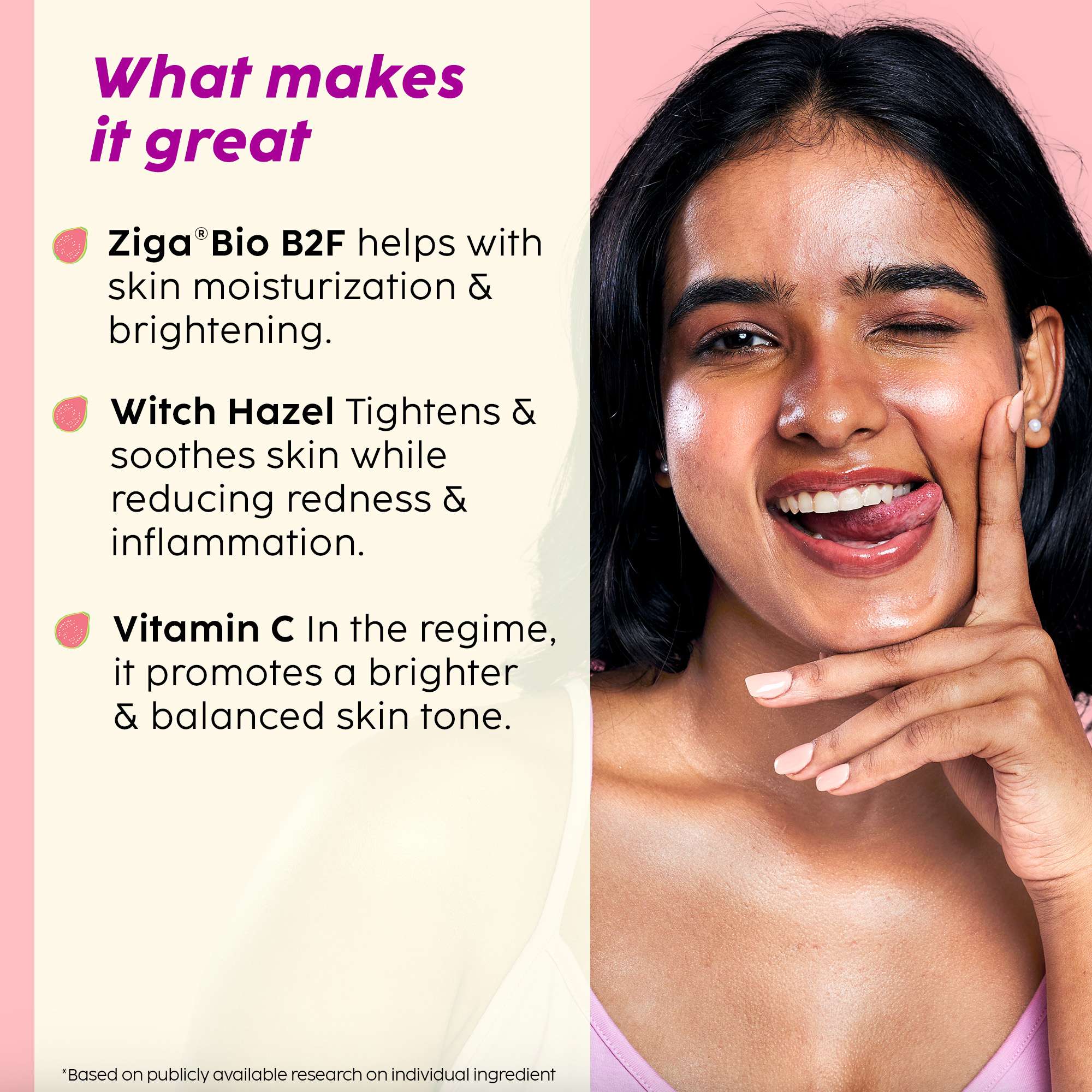 Our 2-in-1 toner brightens & enhances radiance with nourishing guava extract & rose water